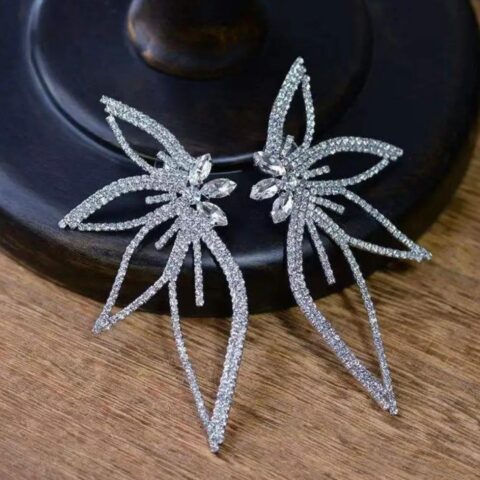 Exaggerated Zircon Maple Leaf Stud Earrings