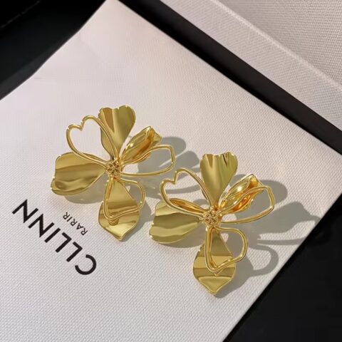 Elegant Gold-Tone Floral Statement Earrings