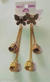Fancy Golden Party Wear Trendy Fashion Butterfly Long Jhumka Earring”.